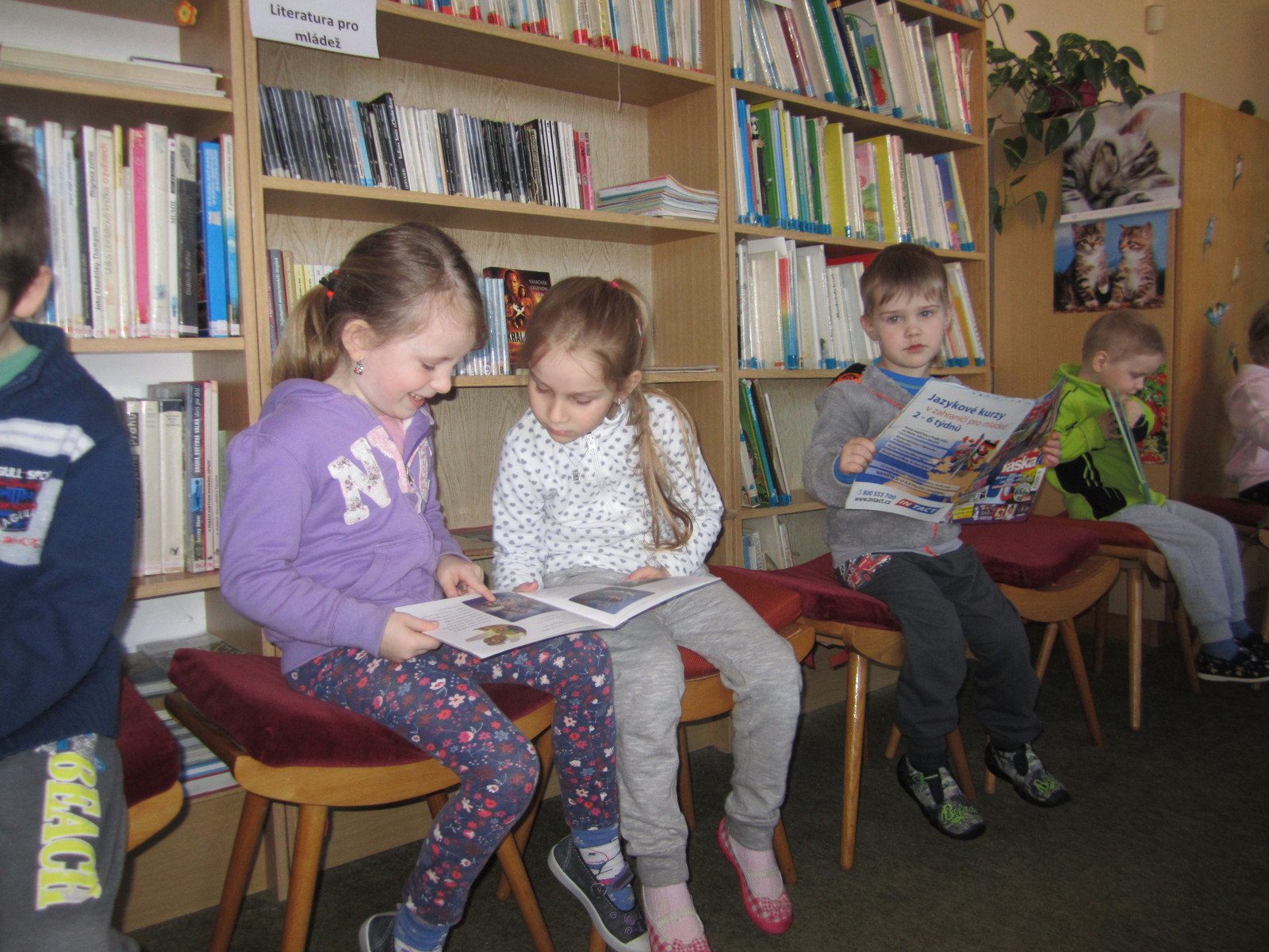 V březnu jsme navštívili místní knihovnu - děti se seznámily s prostory a možností půjčovat si knihy s rodiči (středa 16.00-18.30).