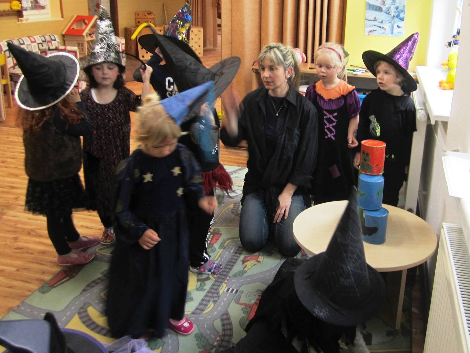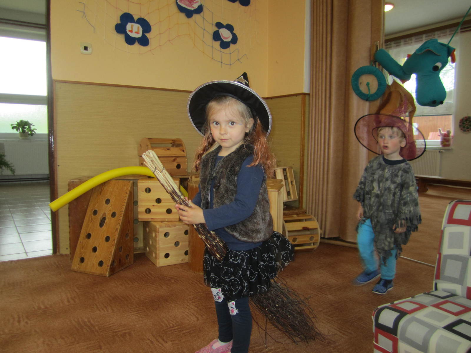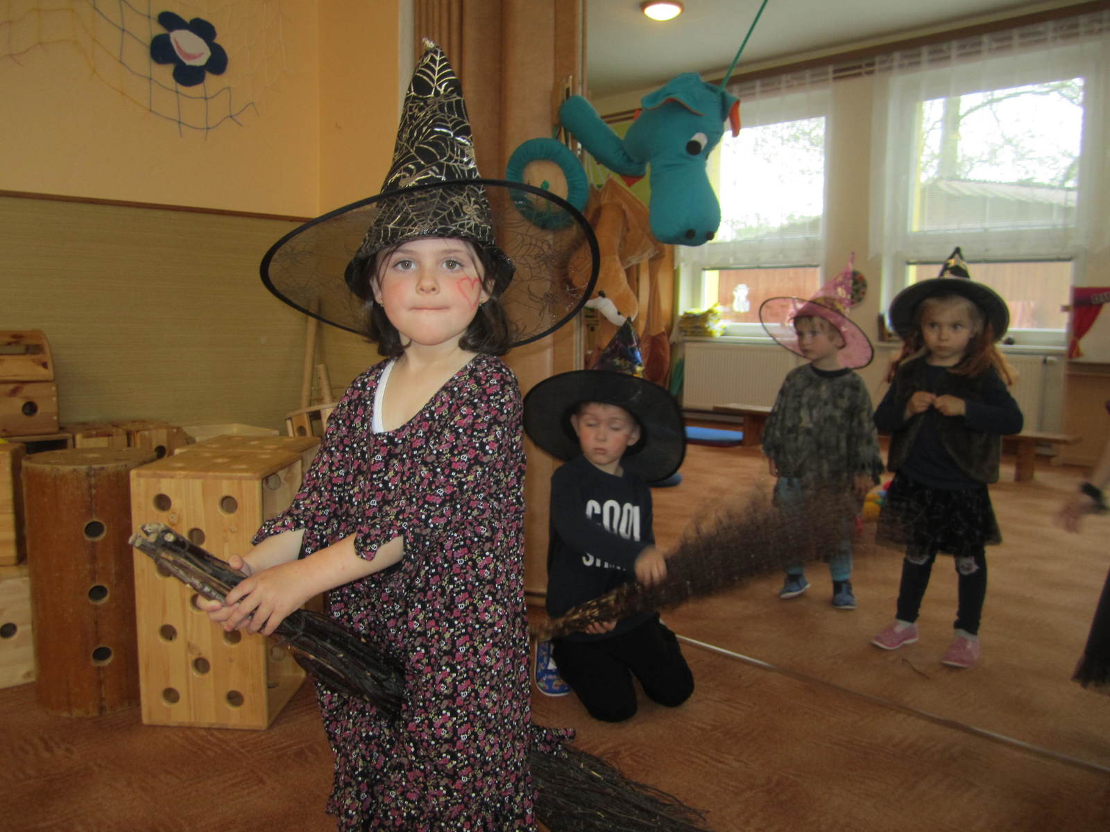 Každoročně ve školce pořádáme čarodějnickou obchůzku po vsi, bohužel pro nepřízeň počasí se letos neuskutečnila, místo ní se školka proměnila na školku plnou čarodějů a čarodějnic a pro děti byl přichystán čarodějnický den - čarodějnice létaly na koštěti, chytaly pavouky, krmily žabáka a plnily další úkoly, nechyběla čarodějnická diskotéka a tancování na velkých míčích.