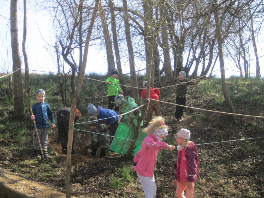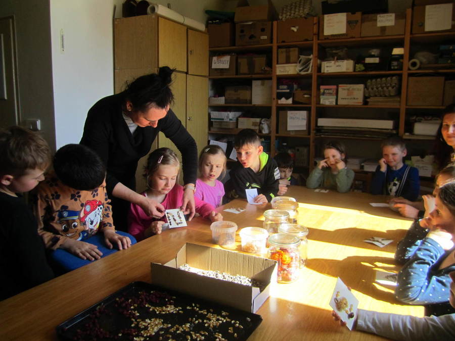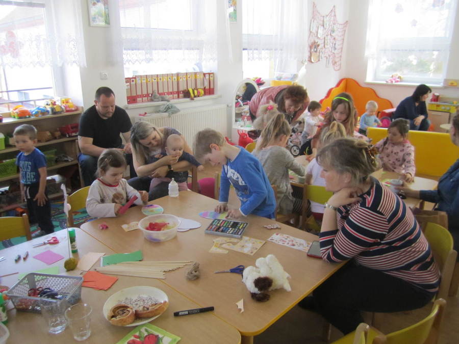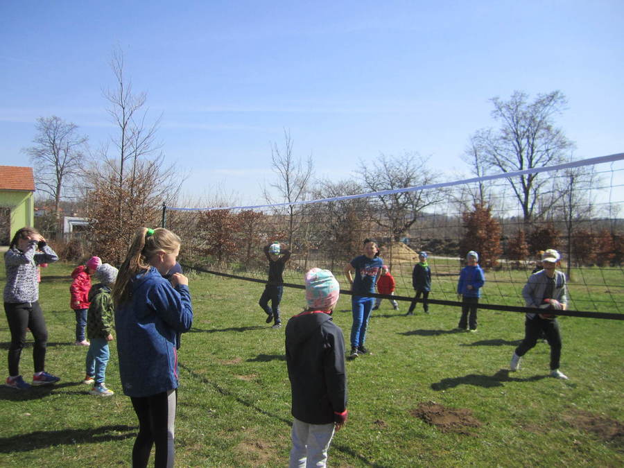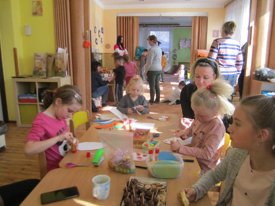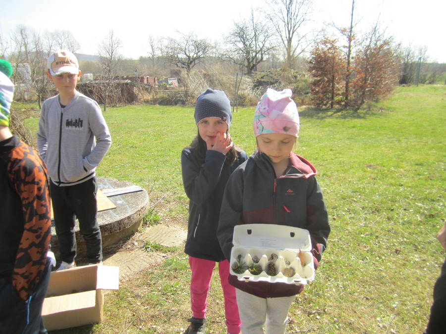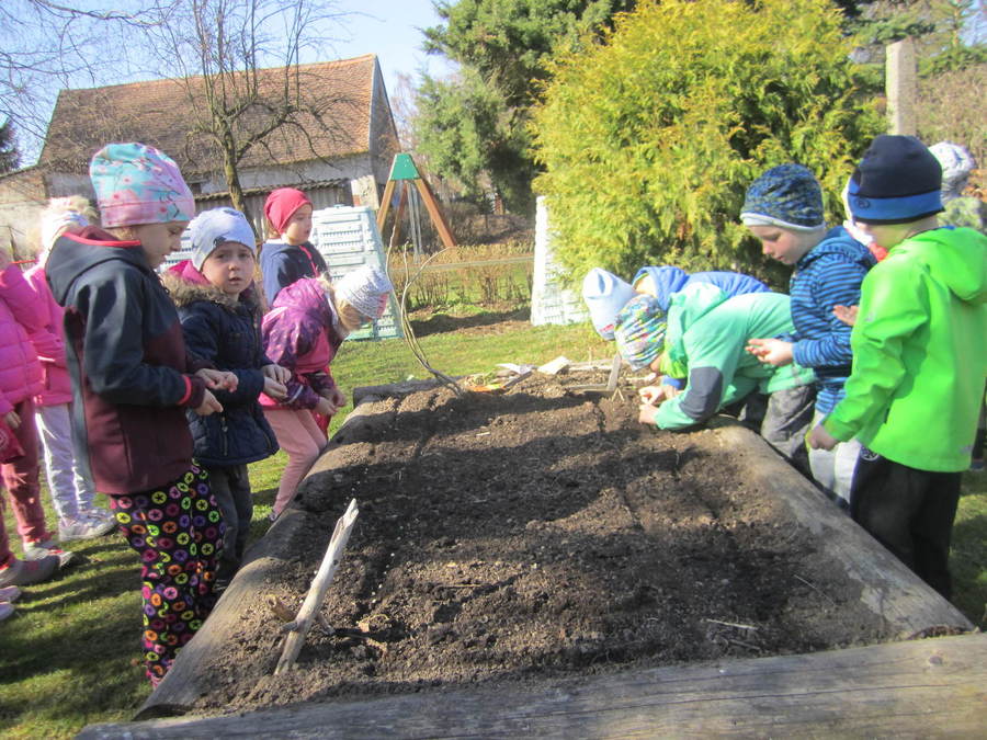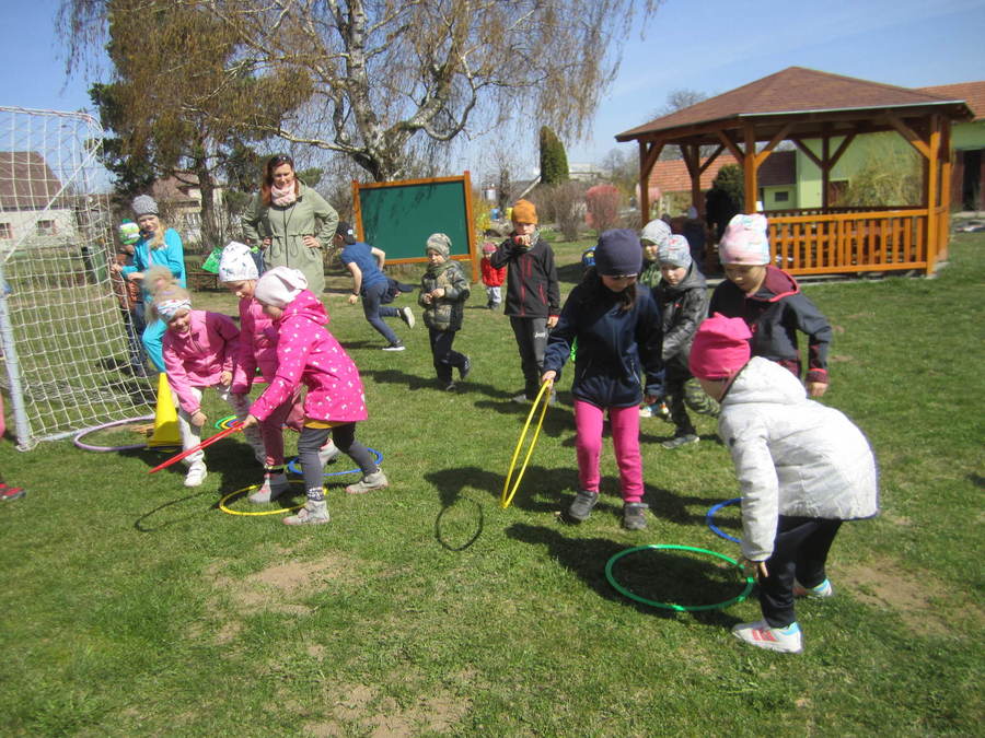 Děti se seznamovaly s velikonočními zvyky, učily se velikonoční koledy, sely obilíčko. Vyráběli jsme velikonoční zápichy z papíru, vyřezávali vajíčka ze dřeva. Všem se povedl králíček z ponožek, děti také zdobily papírové a vajíčkové kraslice. Společně jsme ozdobili vrbičky v zahradě barevnými mašličkami. Rozvozili jsme kompost po zahradě, zaseli mrkev, hrášek a ředkvičky. Připravili jsme pohoštění - banánové hamburgry v čokoládě na tvoření s rodiči. Ve středu 13.4.2022 jsme navštívili základní školu, kde děti tvořily z přírodnin, vyhledávaly je na zahradě, sportovaly, hrály si a povídaly se školními kamarády. Odpoledne se ve školce sešli děti, rodiče dětí a jejich sourozenci při společném velikonočním tvoření, hrách a povídání u kávy.