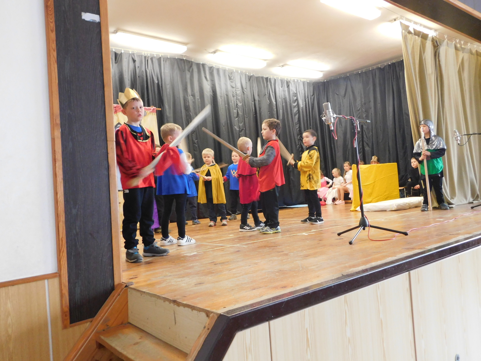 Děkujeme všem zaměstnancům školky a dobrovolníkům (Michal Kabelka - zvučení akce , Lucie Kabelková, Dana Jahodová) za pomoc s organizací. Také děkujeme panu Josefu Číhalovi za vyrobení krásných dřevěných mečů pro rytíře. Všem přejeme krásné prožití velikonoc, svátků jara.