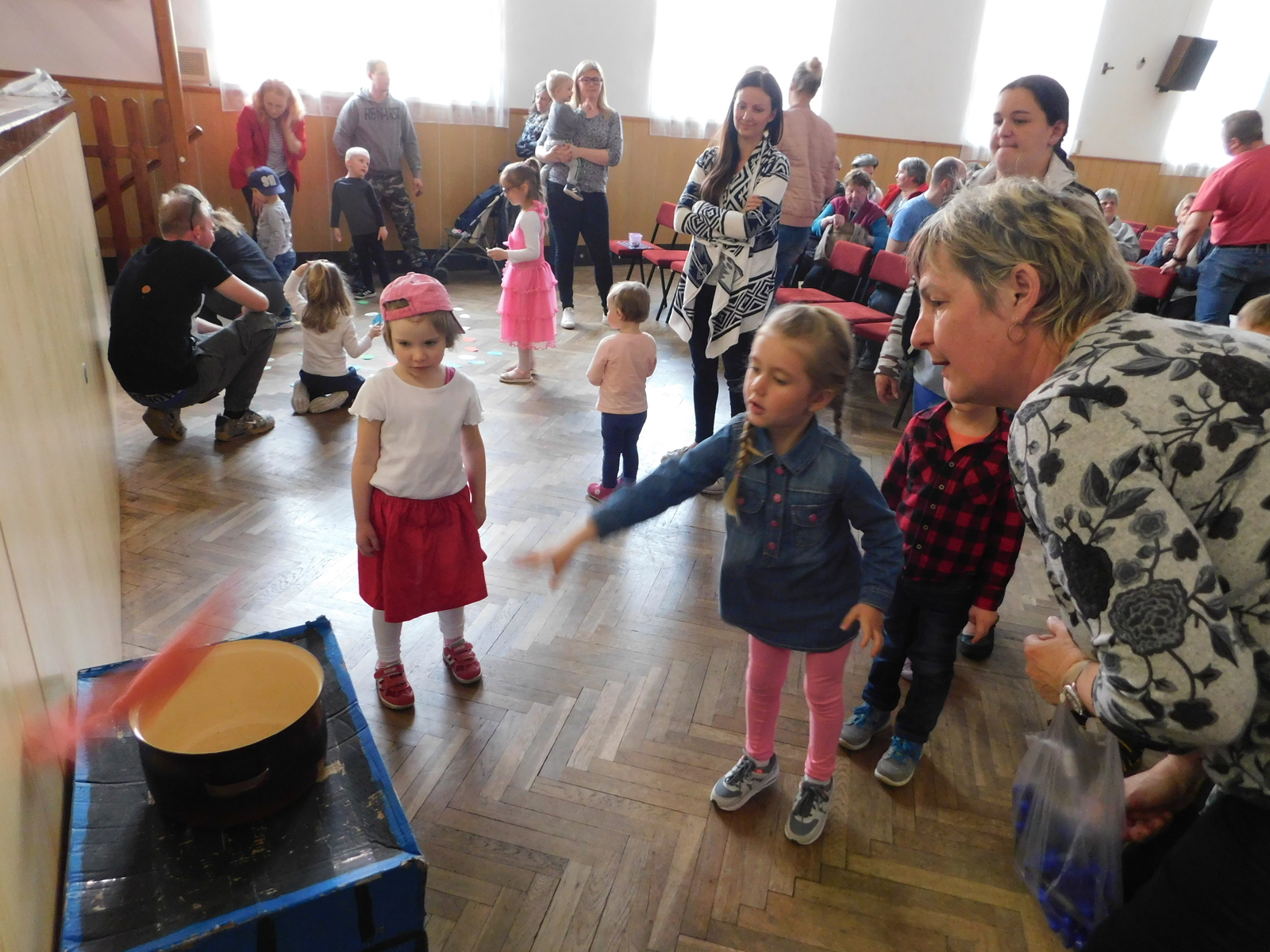 Ve středu 17. dubna se v kulturním domě v Jakubově sešly děti se svými rodiči, prarodiči, sourozenci a dalšími diváky. Děti z dramatického kroužku ve věku 3-8let zahrály pohádku Zlatovláska, děti se proměnily na zvířátka, děvčátka se staly princeznami a chlapci rytíři, nechybělo šermování a tancování. Nejmladší děti ze třídy Sluníček měly připravený veselý taneček. Na závěr všechny děti ze školky přednesly velikonoční říkadla a zazpívaly jarní písničky. Po skončení kulturního programu se děti rozutekly po kulturním domě a plnily úkoly s Jiříkem - chytaly ryby, navlékaly korále, vařily rybu, jezdily na koni. Také si vyrobily zápich - velikonoční vajíčko, hledaly stejná vajíčka, vyzdobily kulturní dům květinkami. Za odměnu si všichni odnášely drobné dárky - perníčky, samolepky, vystřihovánky, pexesa,...Dospěláci si zatím popovídali. Jsme rádi, že přibývá diváků všech generací, kteří se účastní našich akcí.