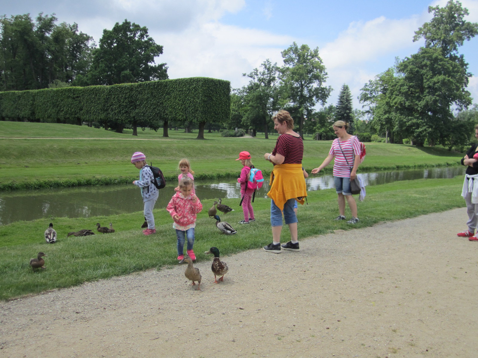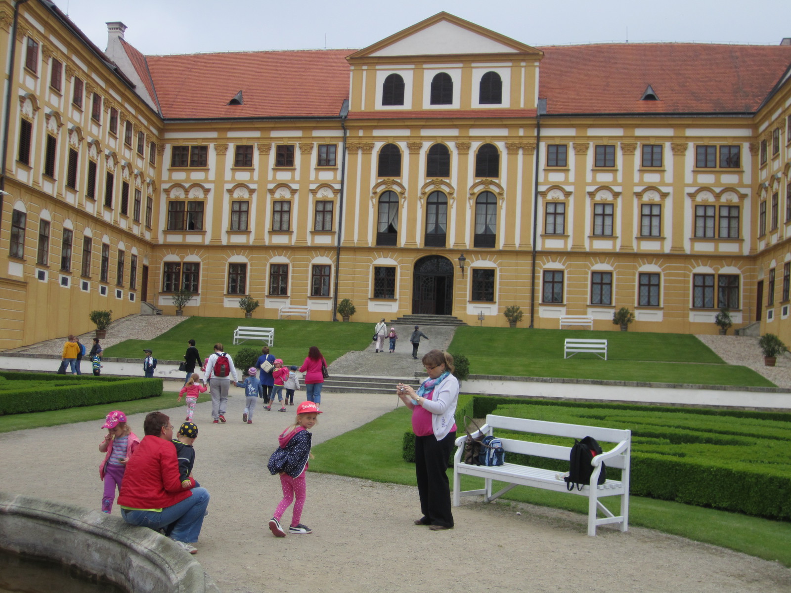 Ve čtvrtek 2.června jsme jeli na výlet do Jaroměřic s rodiči, prarodiči a sourozenci dětí. Nejdříve jsme zhlédli pohádku o Popelce, která byla úplně ,,jiná" trochu strašidelná, trochu legrační, zatancovali jsme si na židli, zasnili, na závěr jsme si užili světýlka i bublinky. Na zahradě si děti přesadily afrikán, který si odnesly domů. Také jsme se dozvěděli, jaká je zahrada v různých ročních obdobích. Prohlídka zámku byla velice poutavá - dozvěděli jsme se jak hrabě s hraběnkou bydleli, jedli, oblékali se. Dětem se velice líbila princezna Karolínka, s kterou se mohly vyfotit. Maminky obdivovali krásnou květinovou výzdobu. Potom následoval rozchod po Jaroměřicích, většina si zašla na zmrzlinu nebo krmila kačenky v zámeckém parku.