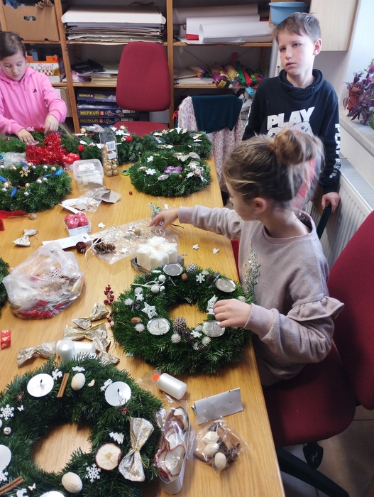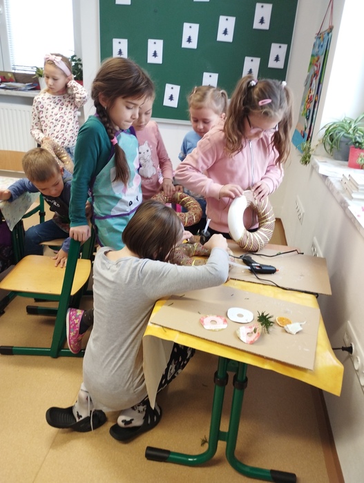 V pátek 1. prosince jsme zahájili předvánoční čas adventním tvořením. Letos jsme vyráběli věnečky. V každé třídě měly jinou podobu, ale všem se moc povedly.