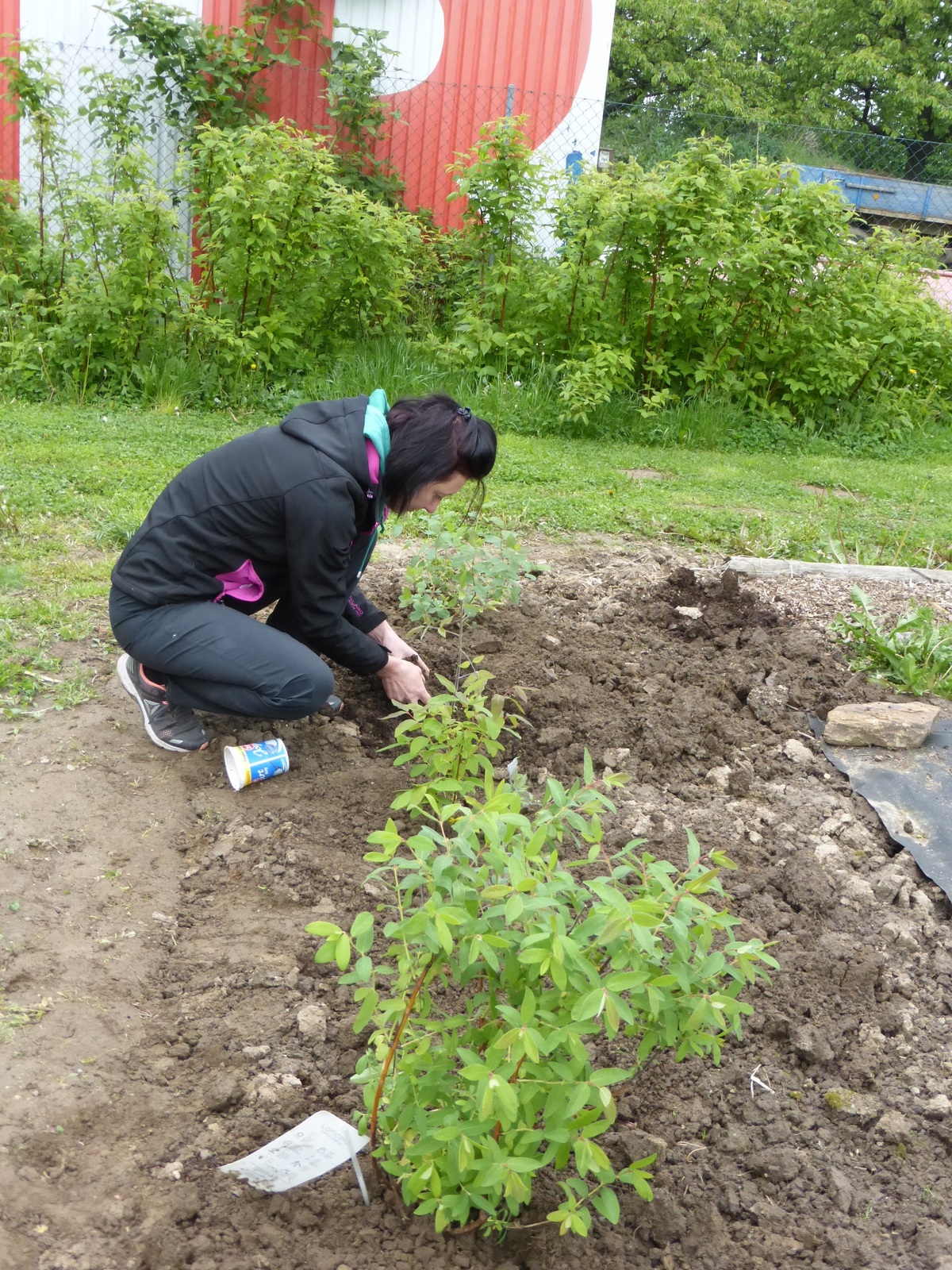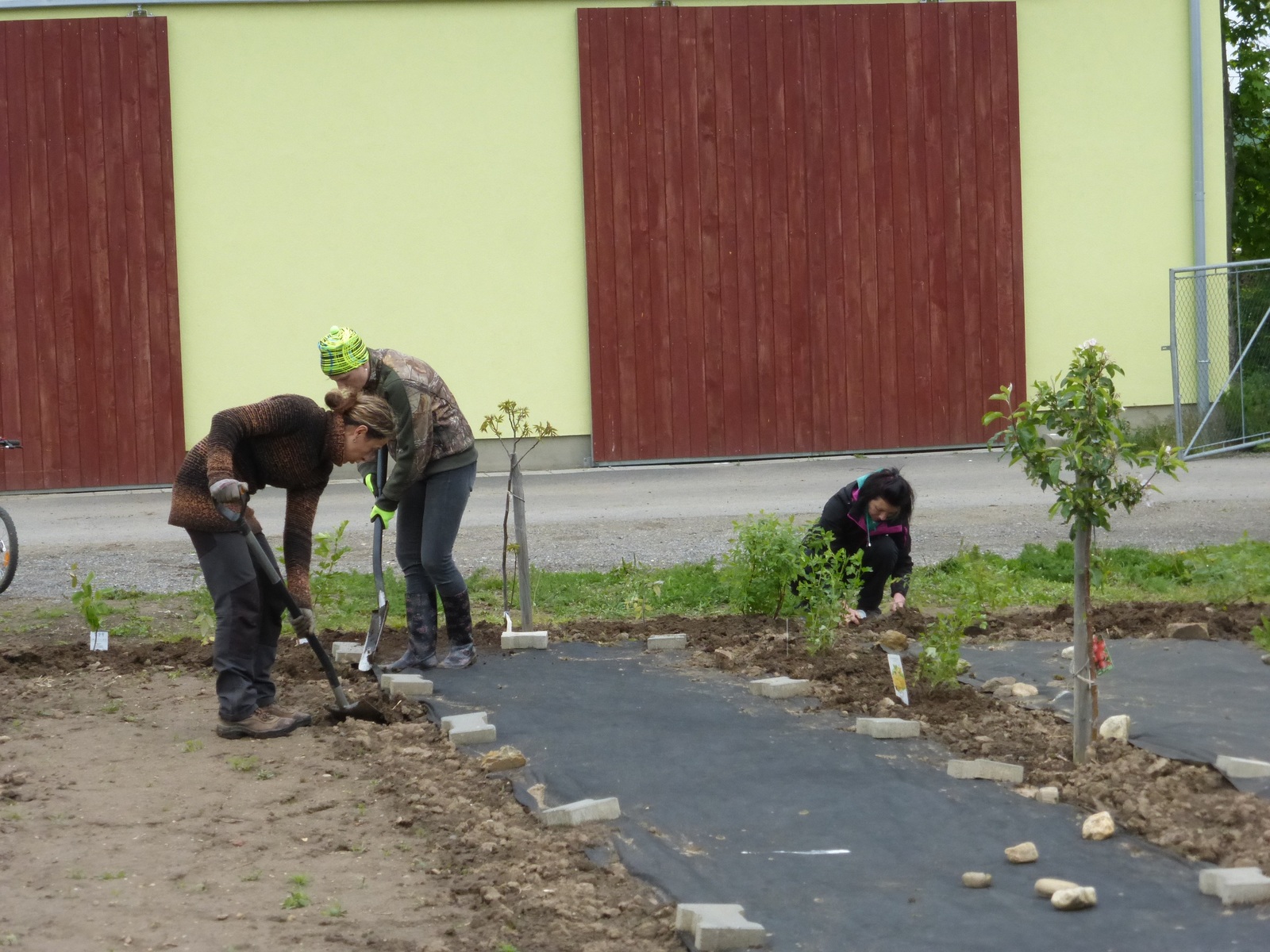 V sobotu 18. května jsme se na školní zahradě sešli s rodiči i dětmi, abychom vysázeli asi 15 nových keřů. Na zahradu nám přibyly angrešty, rybízy, josta, aronie, rakytníky, několik druhů kamčatských borůvek, muchovníky atd. Zasadili jsme i předpěstované dýně a rajčata a upravili vrbové iglú.