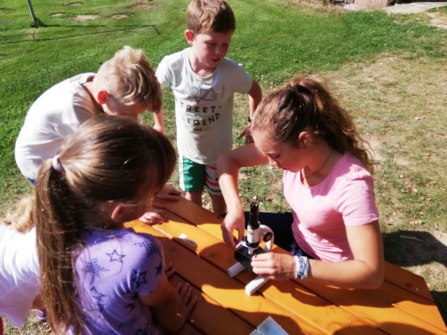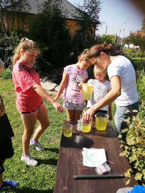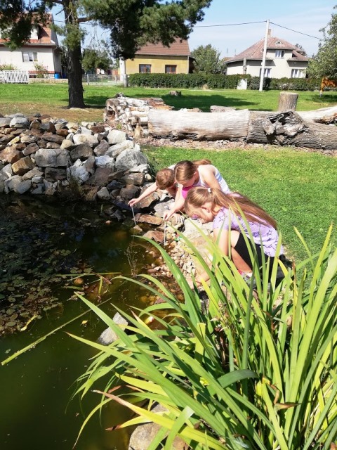 Ve středu 16. září proběhl na školní zahradě další tematický den, ve kterém jsme se tentokrát zaměřili na vodu. Přemýšleli jsme, odkud se voda bere, kudy k nám doputuje do našich domácností a na co všechno ji potřebujeme. U jezírka jsme zkoumali teplotu vody u hladiny a u dna, zkoušeli jsme její povrchové napětí a pozorovali jsme některé živočichy, které jsme si nalovili. Pomocí klíčů k určování vodních bezobratlých jsme se pokusili najít jejich název. Na výtvarném stanovišti si děti vyráběly schránku chrostíka a pomocí skládaček se dověděly něco o vývoji žáby a vážky. Tato akce byla podpořena Fondem Vysočiny.