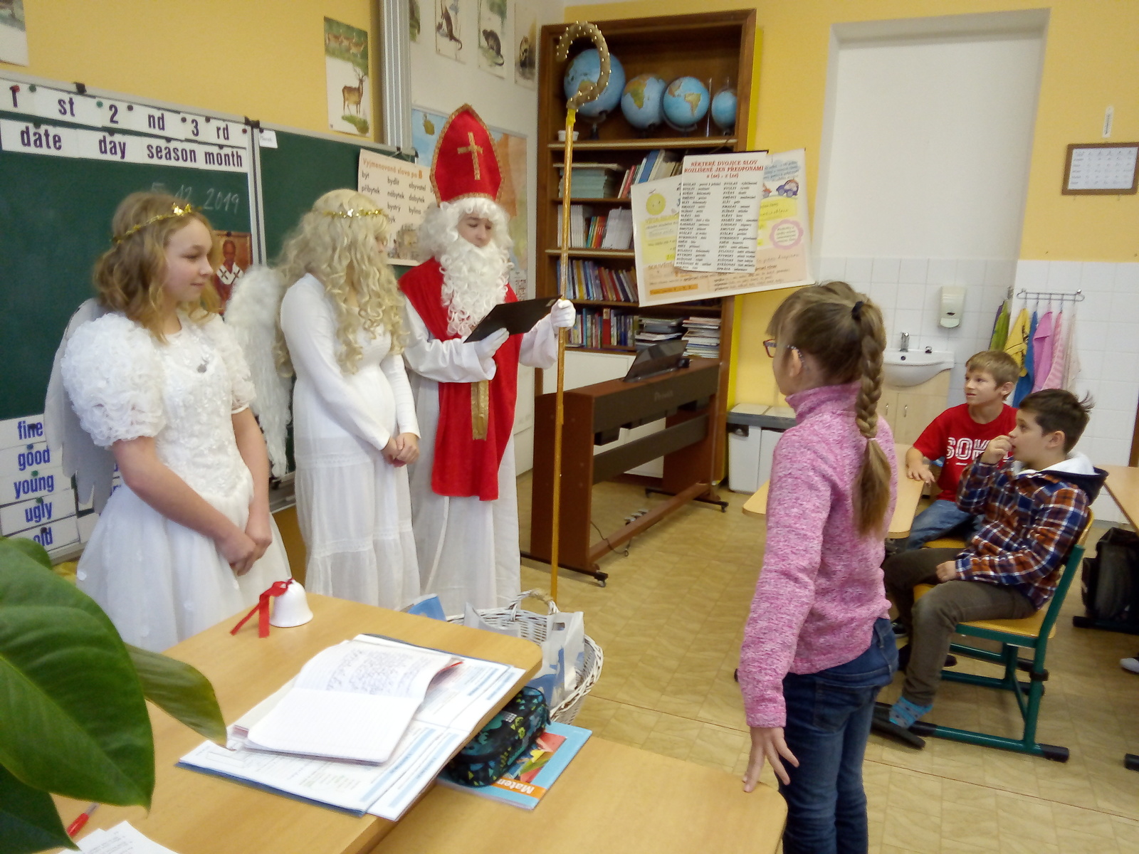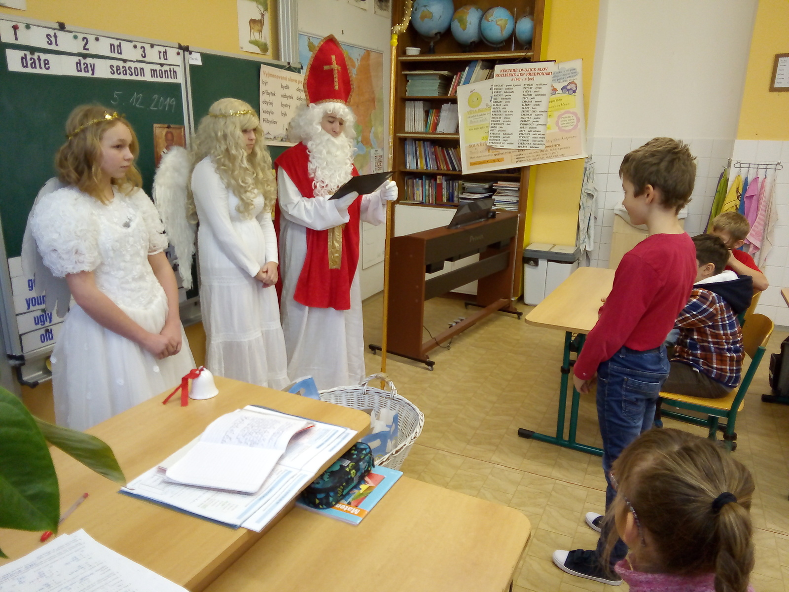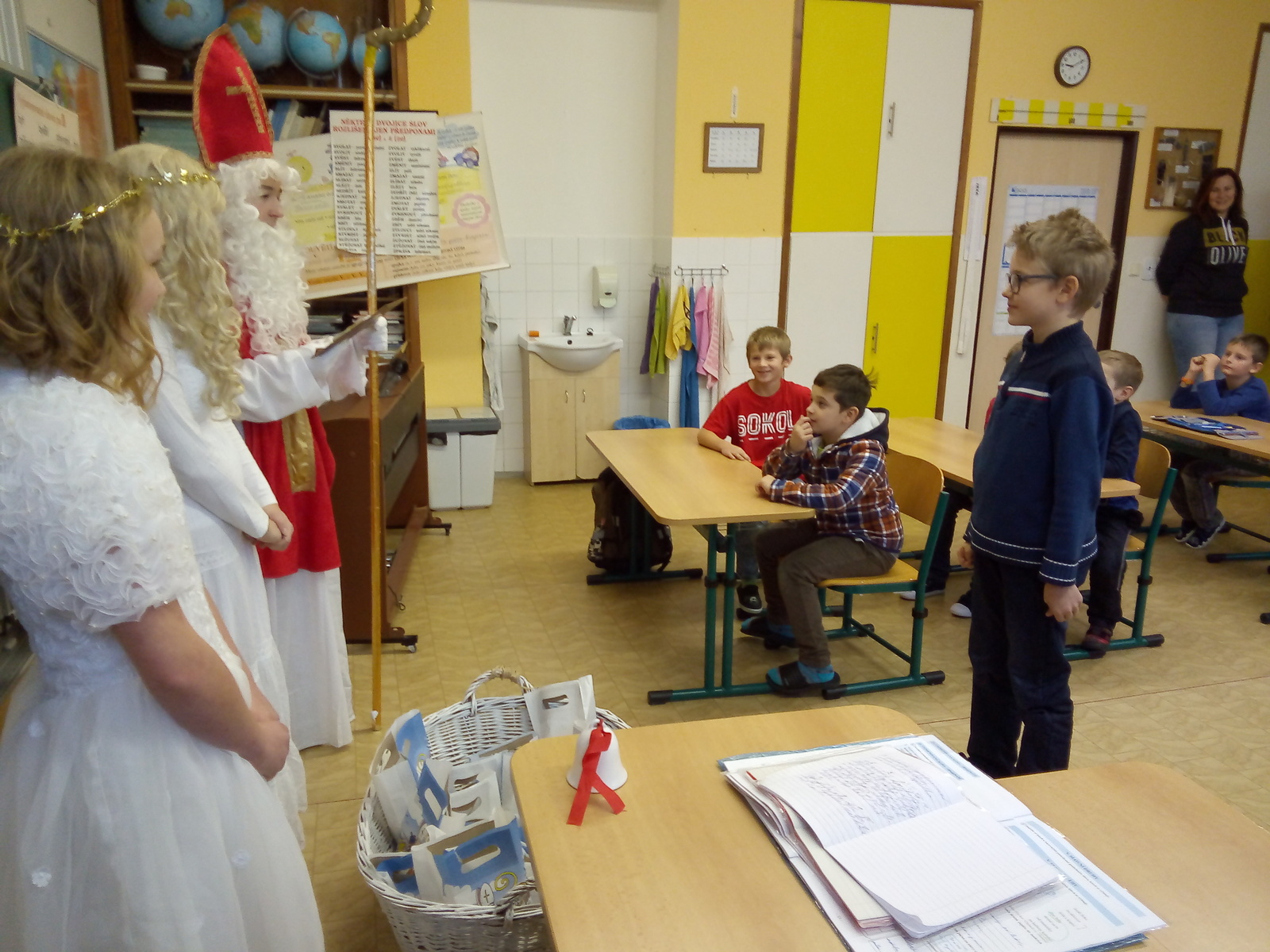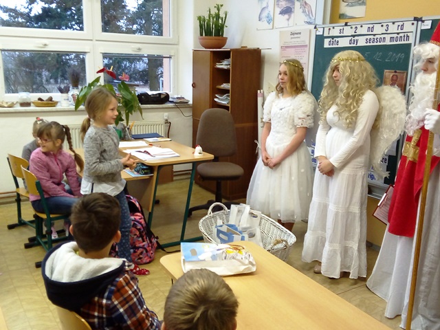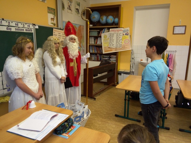 Každoročně 5. prosince očekávají děti návštěvu svatého Mikuláše. Většina vyhlíží jeho příchod s napětím, mnozí i s obavami, jestli byli dost hodní, aby mohli dostat kýžený mikulášský balíček. Mikuláš v doprovodu dvou andělů navštívil i naši školu a děti si z jeho úst vyslechly chválu i upozornění na nedobré chování. Nakonec všichni slíbili, že se polepší, takže čerti museli tentokrát odejít s prázdnou.