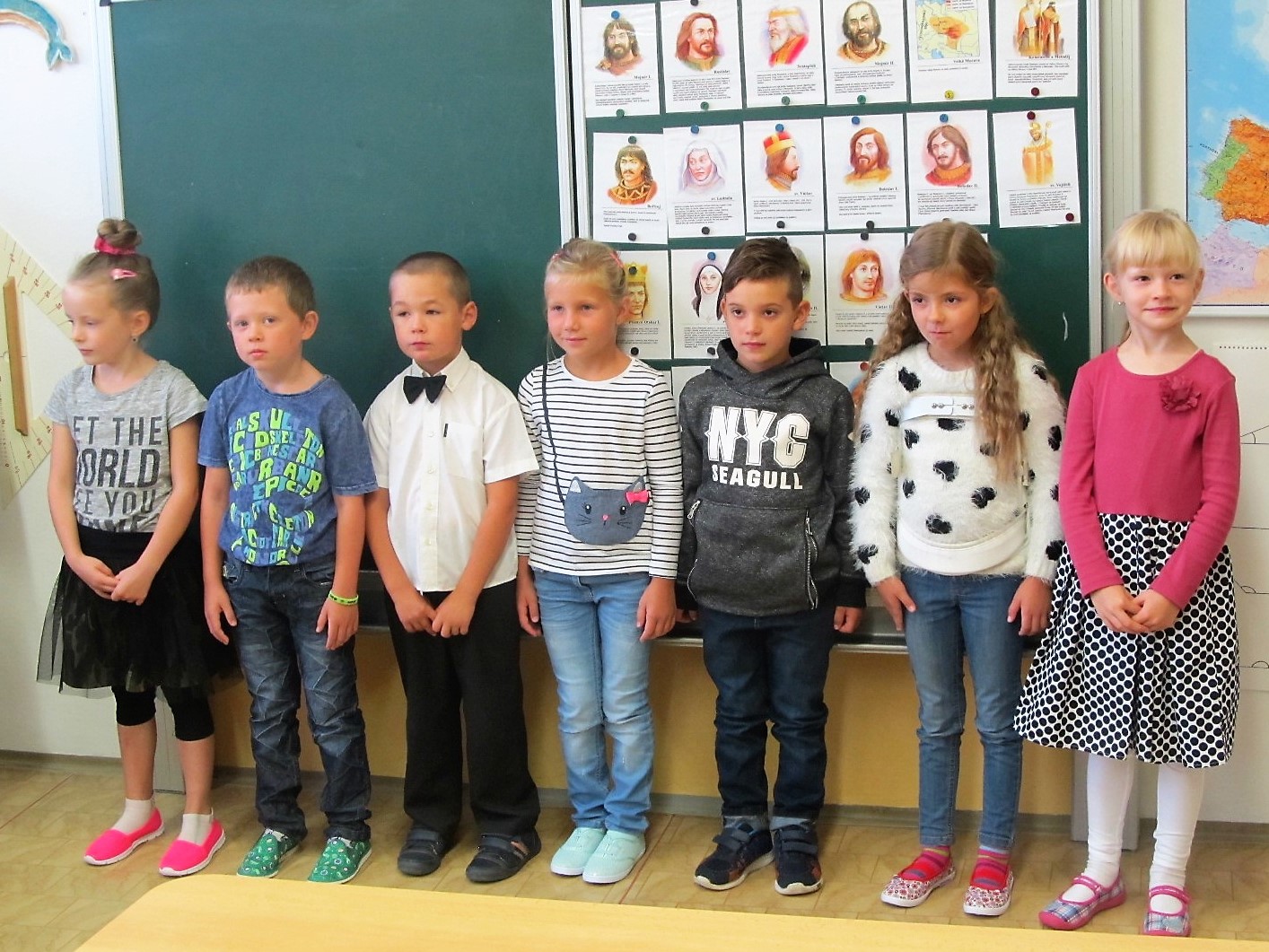 V pondělí dne 3. září jsme slavnostně zahájili nový školní rok. Do první třídy nastoupili následující žáci: Viktorie Alinová, Adam Benkovič, Jan Doležal, Lucie Kovářová, Sebastián Novotný, Vanesa Součková a Alžběta Tejralová. Všem, nejen prvňákům, přejeme, aby se jim ve škole líbilo, byli zde spokojení a úspěšní.
