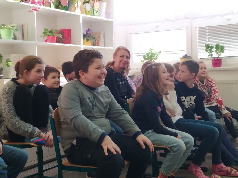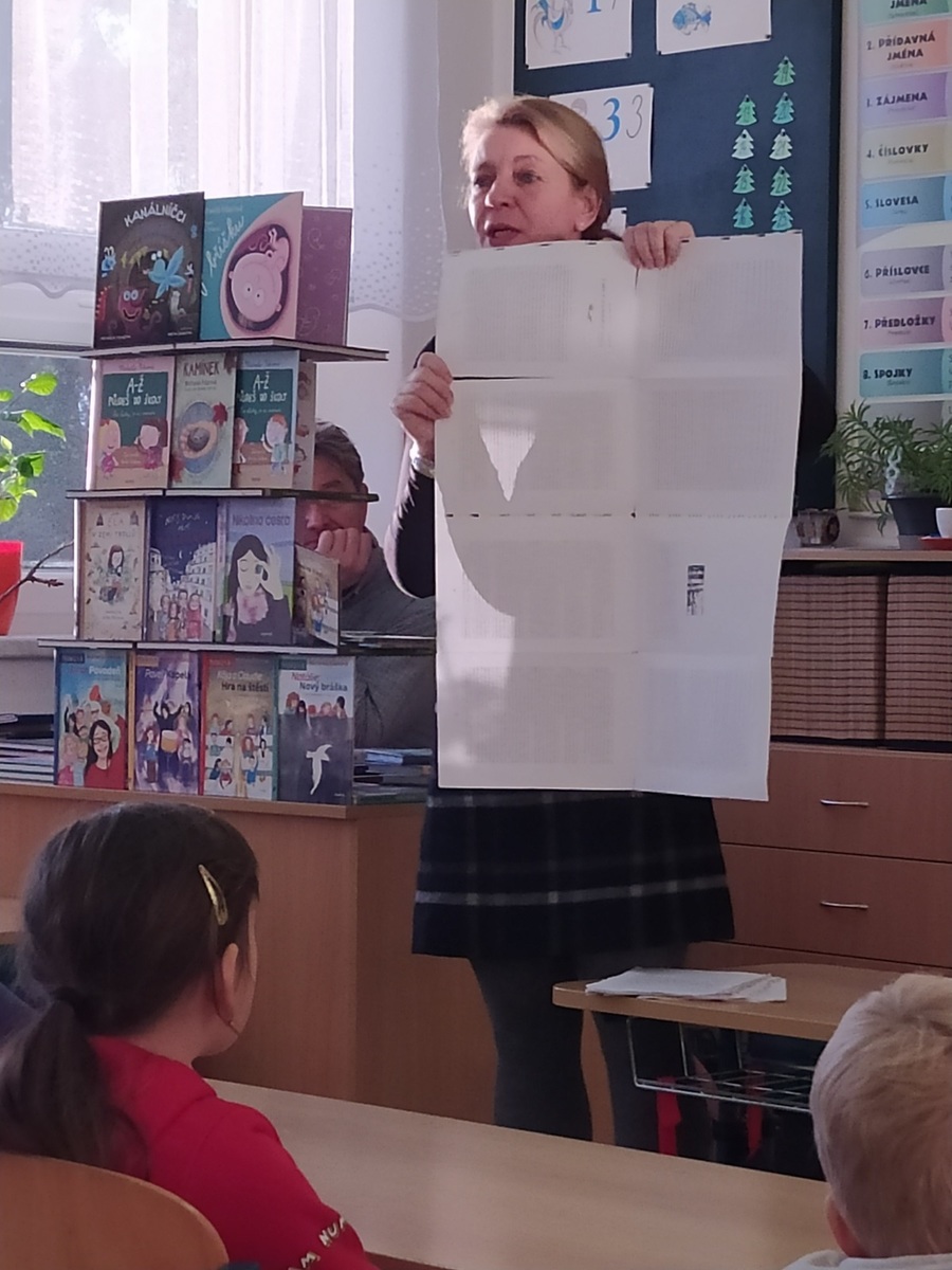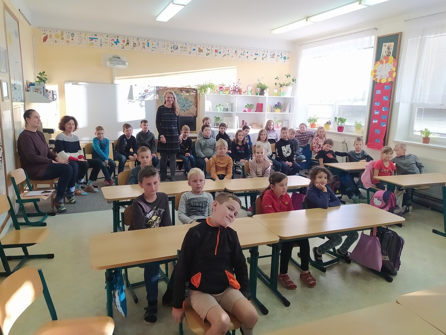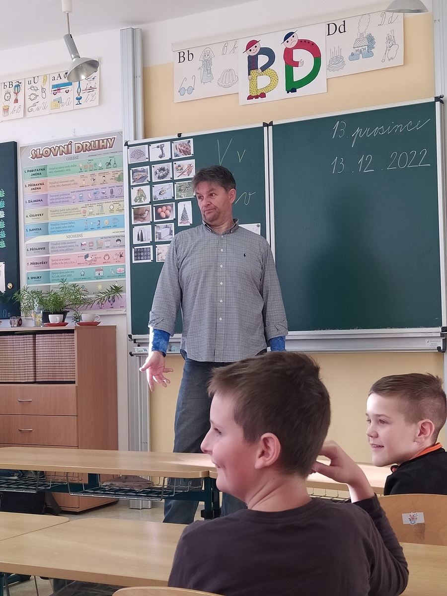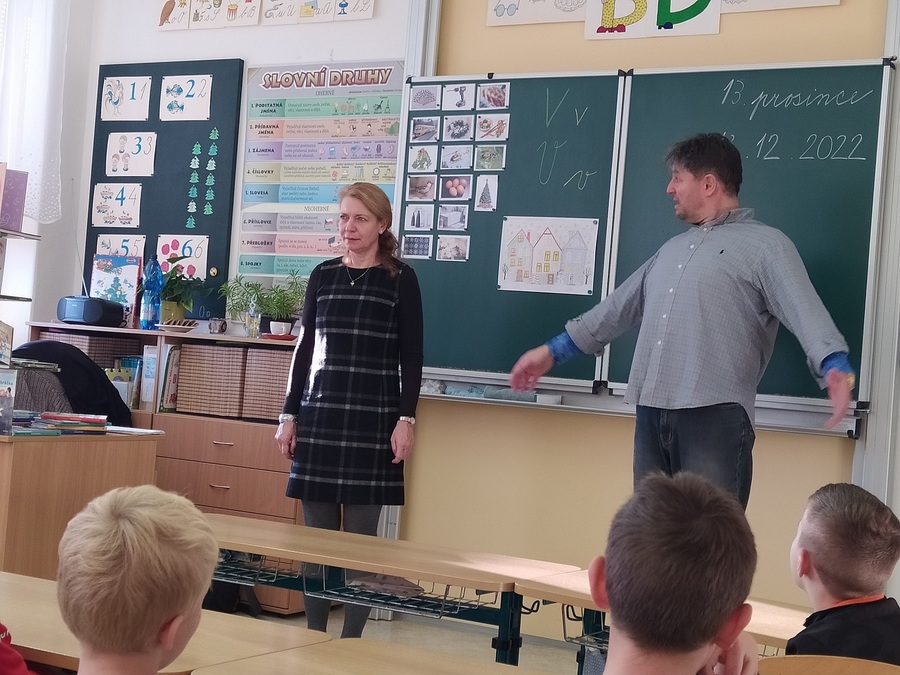 Dne 13. prosince do školy zavítala paní Michaela Fišarová - spisovatelka dětských knih. Doprovodil ji herec Miroslav Reil. Společně nám představili dvě knihy. Všichni jsme byli nadšení. A někteří žáci si povzdechli: Škoda, že už si Ježíšek můj dopis odnesl. Dopsal bych tam ještě knížku.