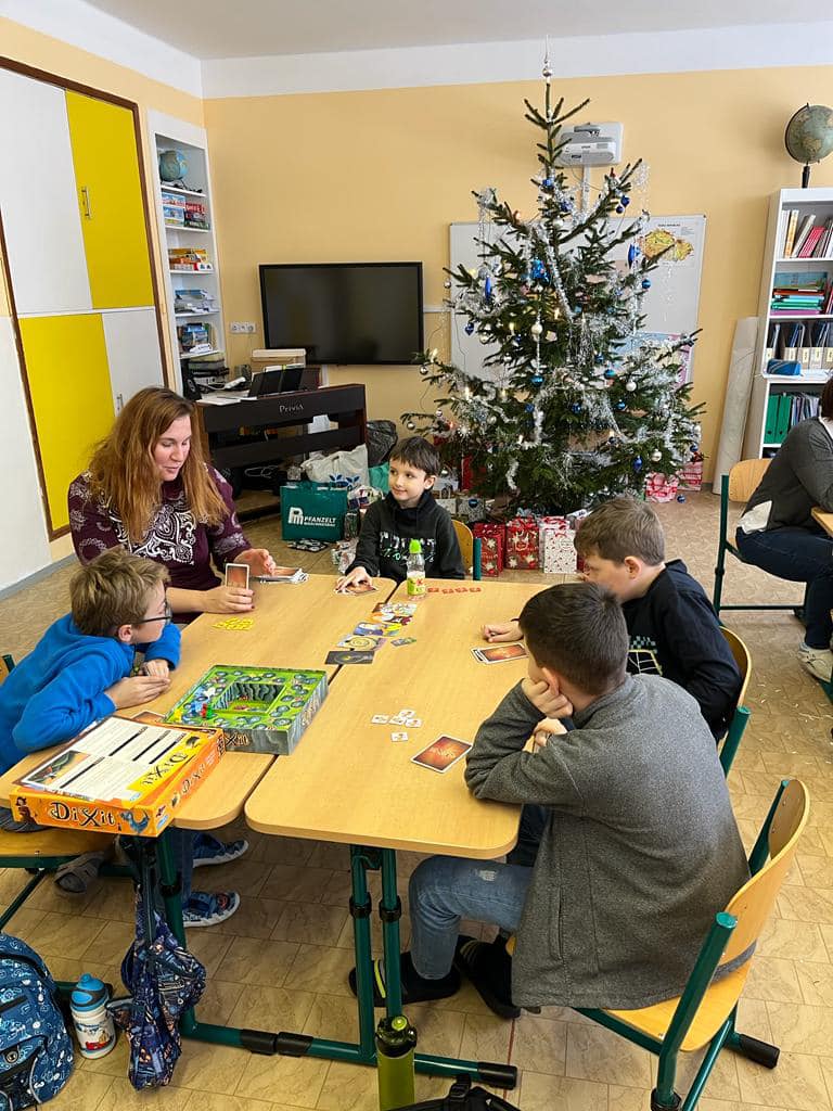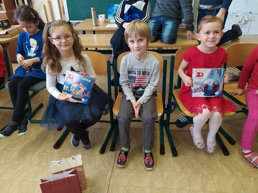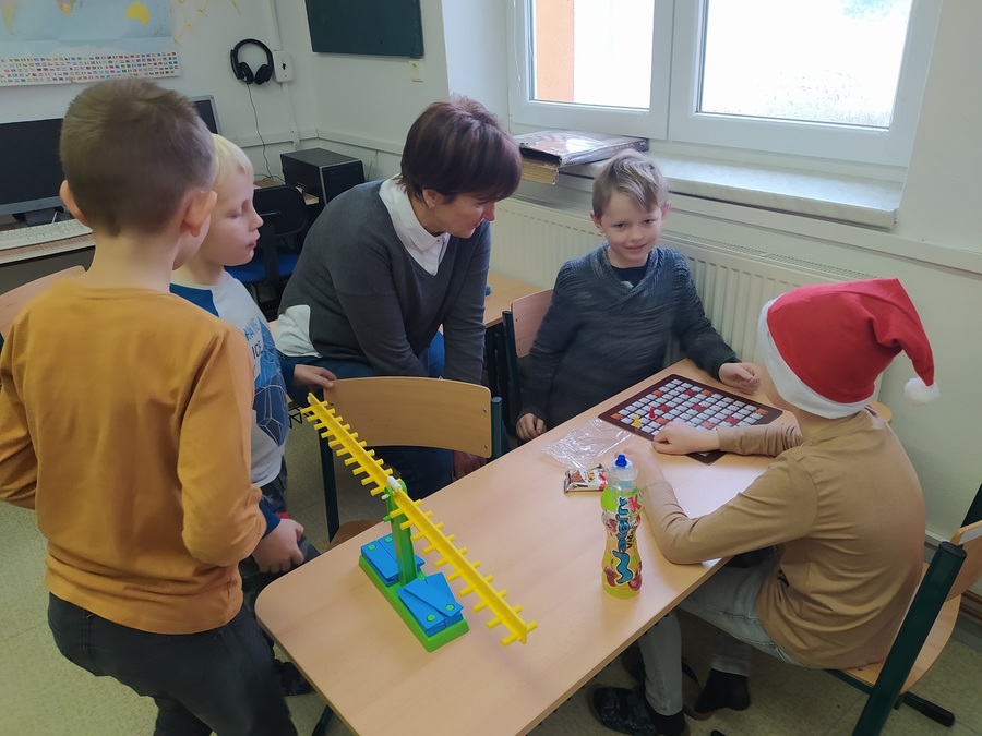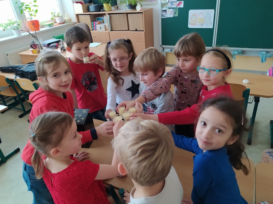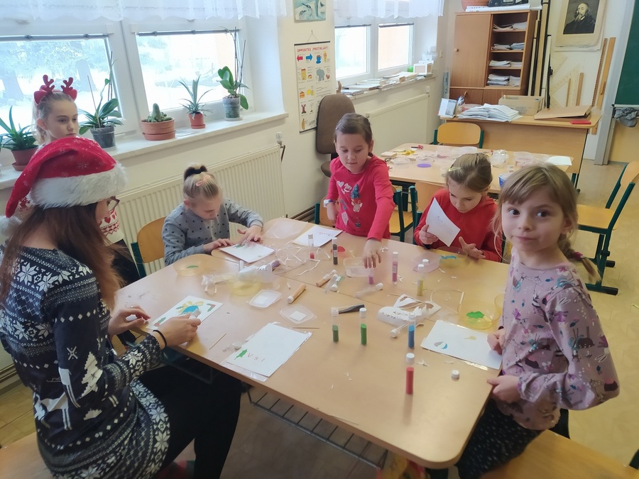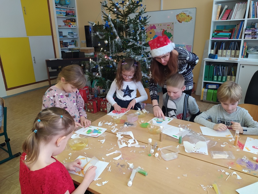 Poslední den před prázdninami jsme si zpestřili vánočním čarováním a povídáním o starých zvycích, hráli jsme společenské hry a vyráběli. Nejvíce se však děti těšily na vánoční nadílku. Sešli jsme se u stromečku, zahráli a zazpívali pár písniček. A pak už došlo na dlouho očekávanou nadílku. Ty rozzářené oči dětí jsou nejlepším dárečkem pro nás všechny. Na závěr si ještě prvňáčci přiťukli na zdraví v novém roce.