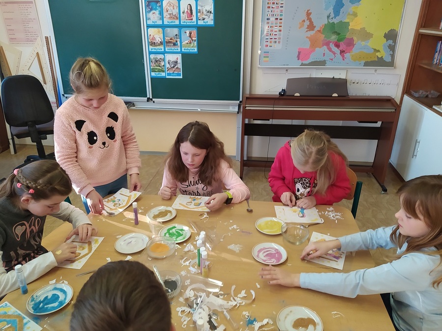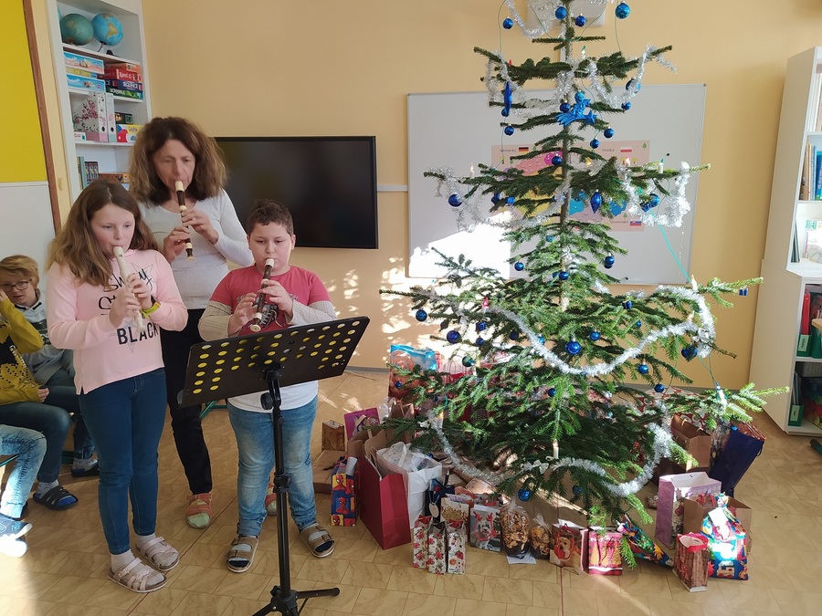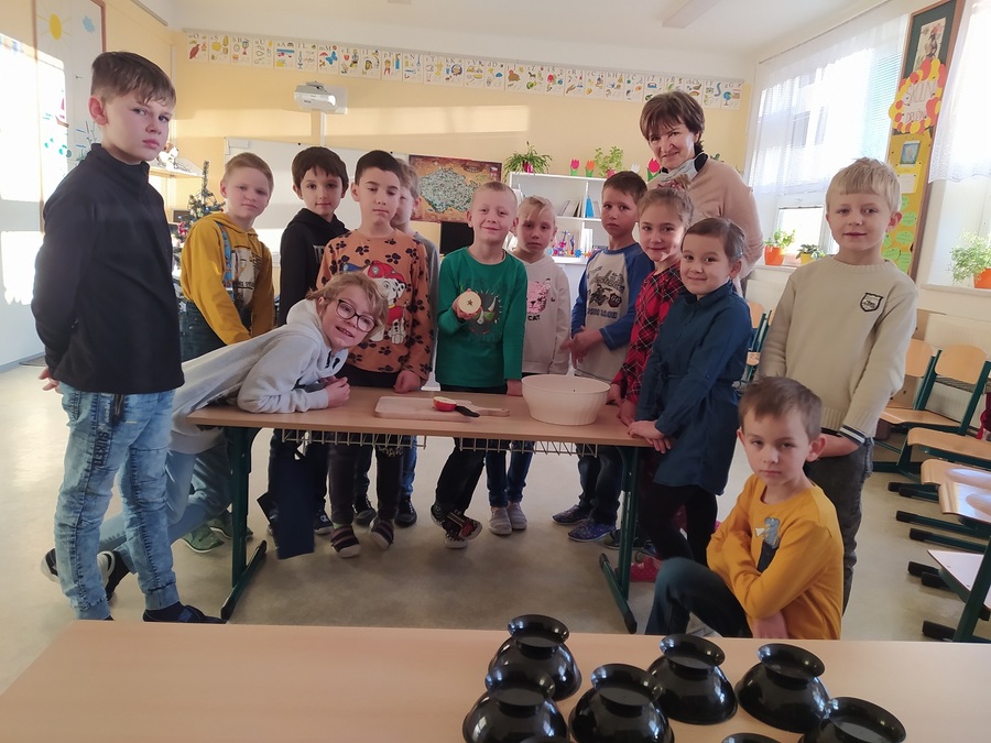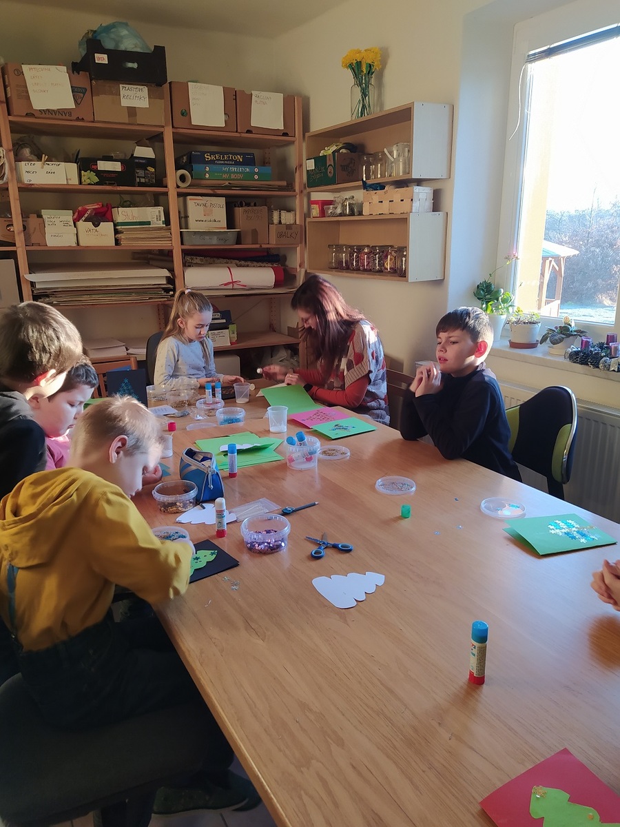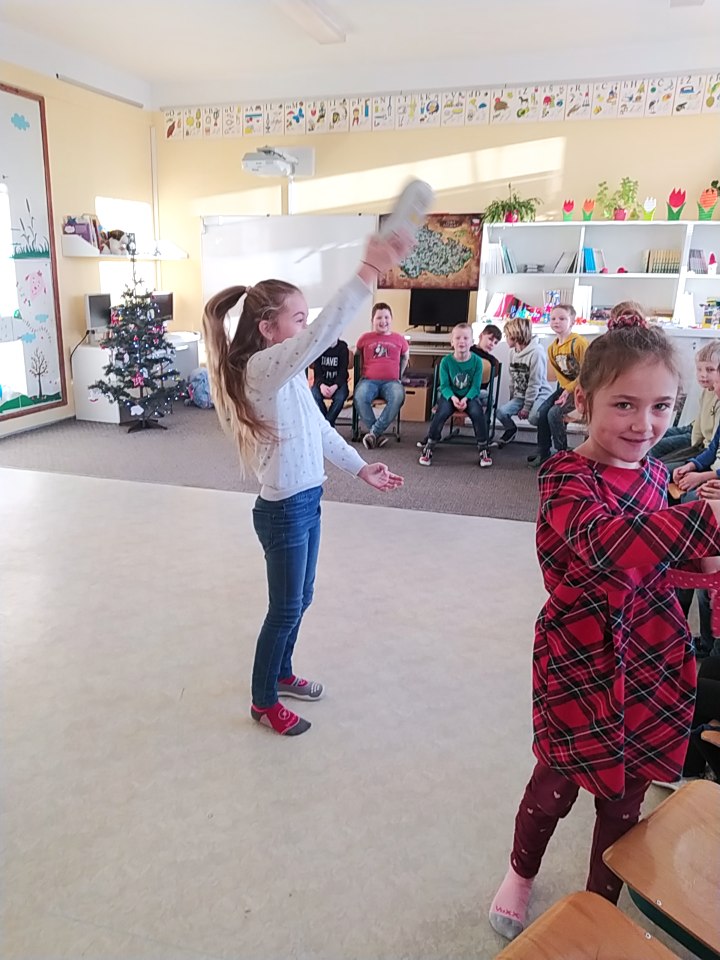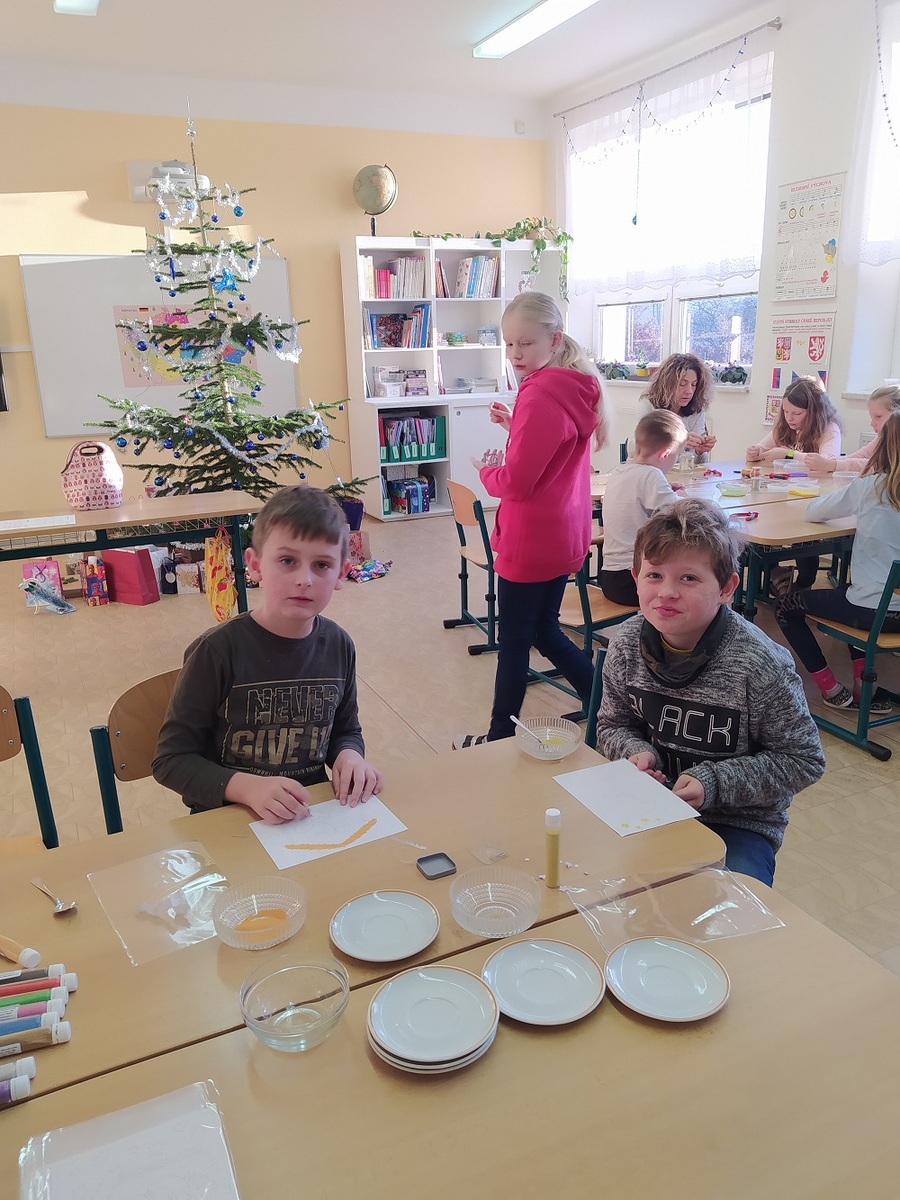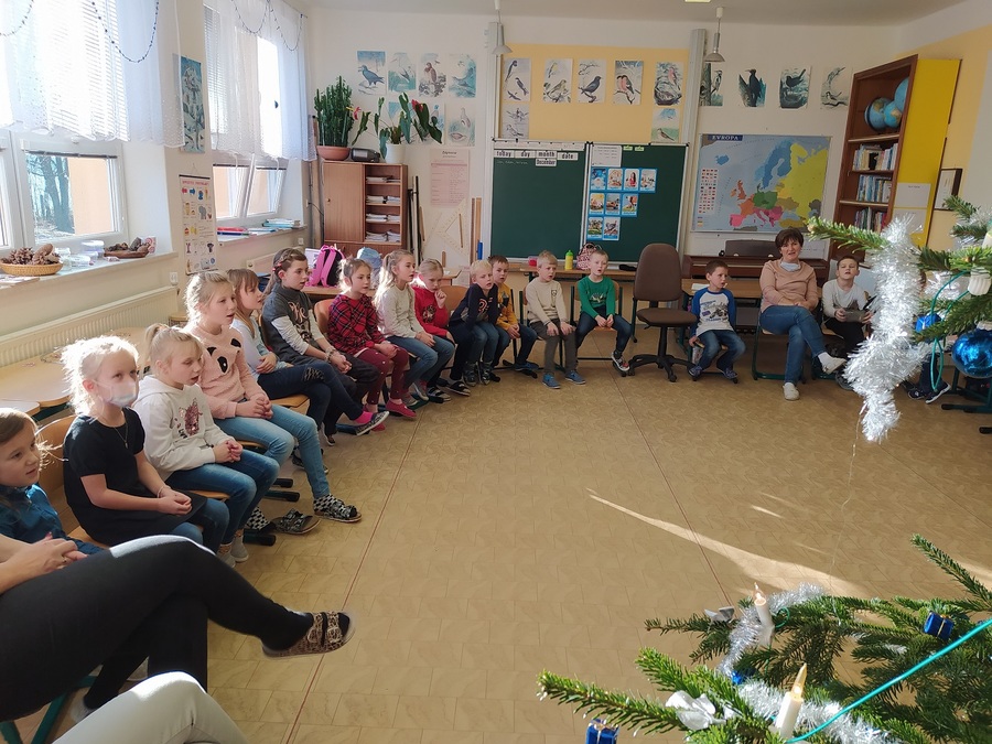 Ve středu 22. prosince nadešel dlouho očekávaný den - vánoční dílny a školní nadílka. Tentokrát jsme se těšili o to více, protože škola byla 14 dní uzavřena. Tak jsme si to chtěli vynahradit. A povedlo se! Žáci si vyrobili přáníčka, pískované obrázky, drátkované ozdoby, pomocí kouzel se dozvěděli, co je čeká v příštím roce, hráškovým kouzlem si přičarovali štěstí na příští rok, dozvěděli se něco i o starých vánočních zvycích. Potom se sešli všichni u stromečku, kde jsme si zahráli a zazpívali koledy. A pak došlo na očekávanou nadílku. Všichni odcházeli na prázdniny s velkým očekáváním, co jim donese Ježíšek.